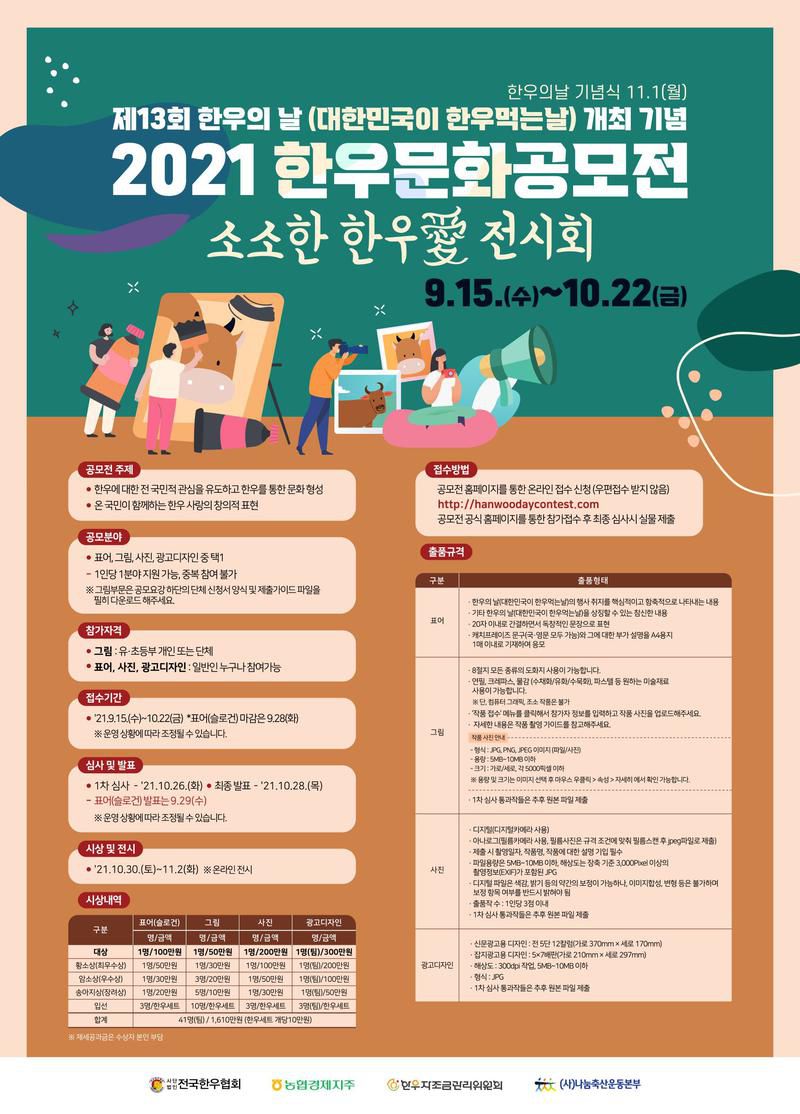 ❍ 공모전명 : 2021 한우문화공모전(소소한 한우愛 전시회)