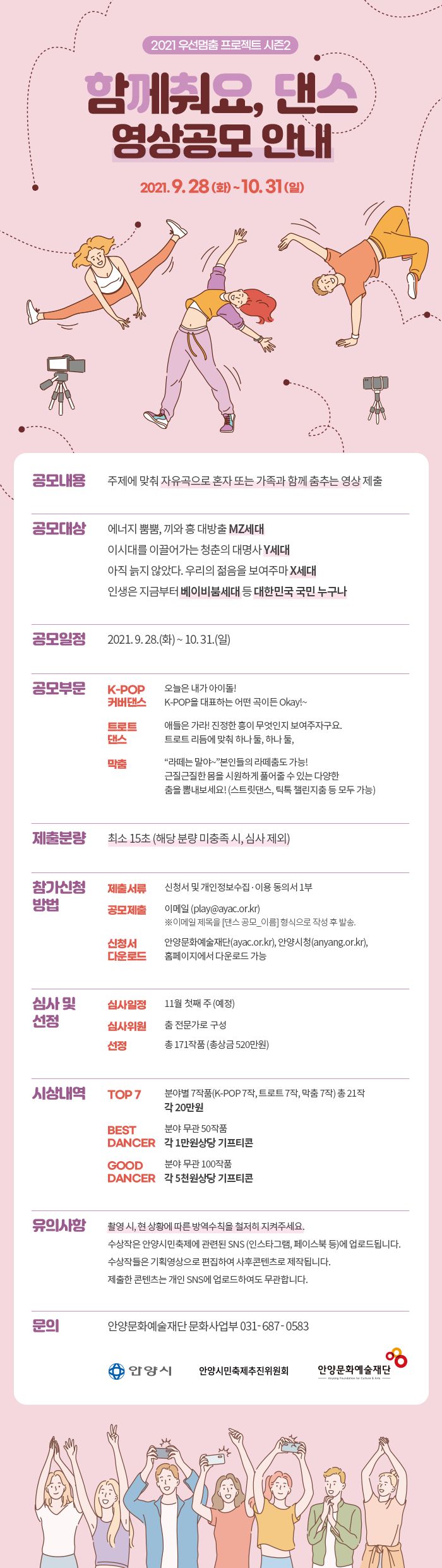 - 주제에 맞춰 자유곡으로 혼자 또는 가족과 함께 춤추는 영상 제출