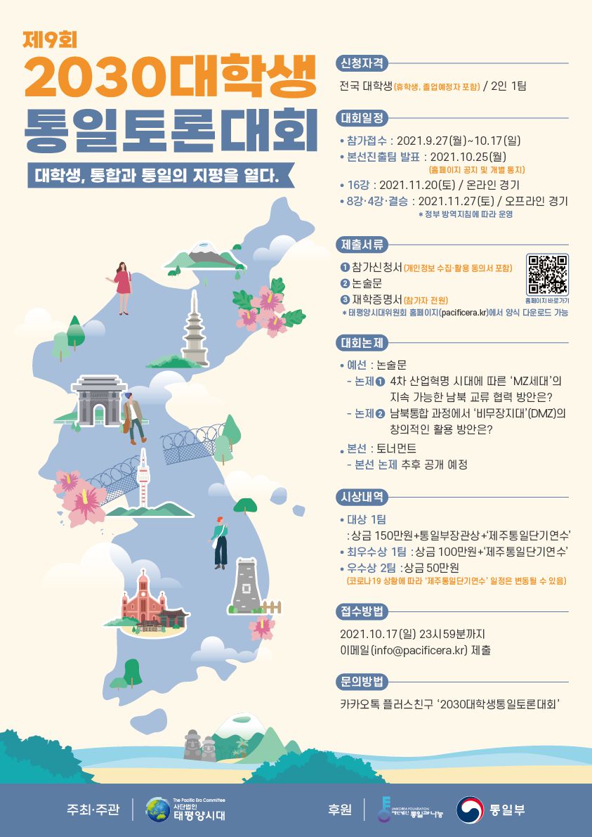▷문의사항 : 카카오톡 플러스친구 '2030대학생통일토론대회'