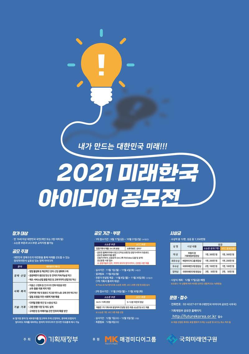 - 응모방법 : 공모전 홈페이지(http://www.futurekorea.or.kr/)를 통한 온라인 접수