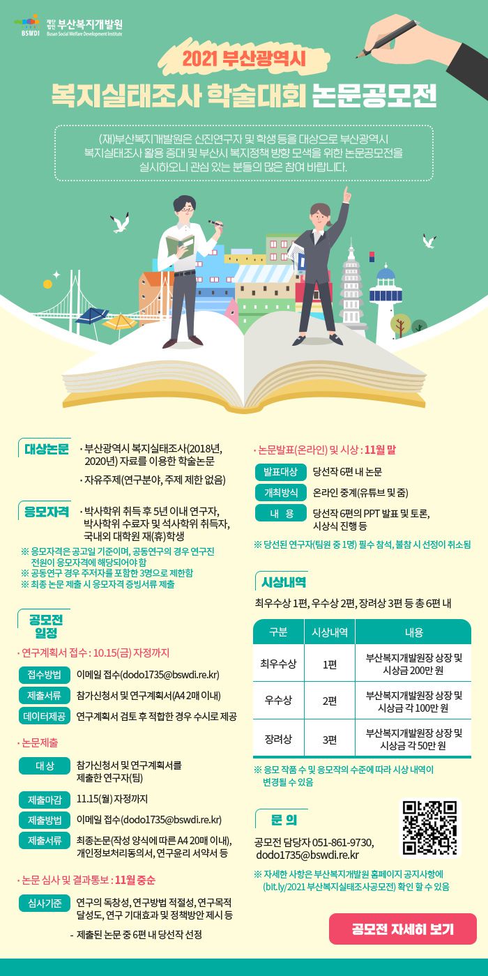 - 논문공모전 담당자 ☏051-861-9730 / dodo1735@bswdi.re.kr