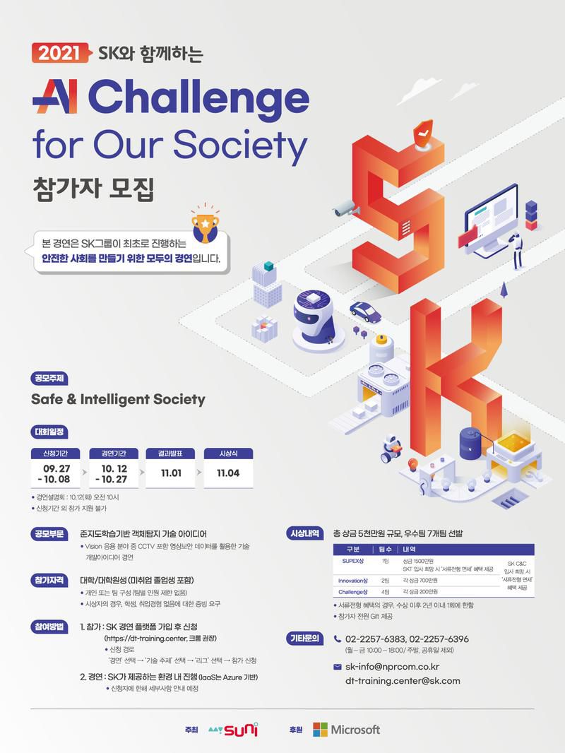 안녕하세요. SK와 함께하는 2021 AI Challenge for Our Society 공모전입니다.