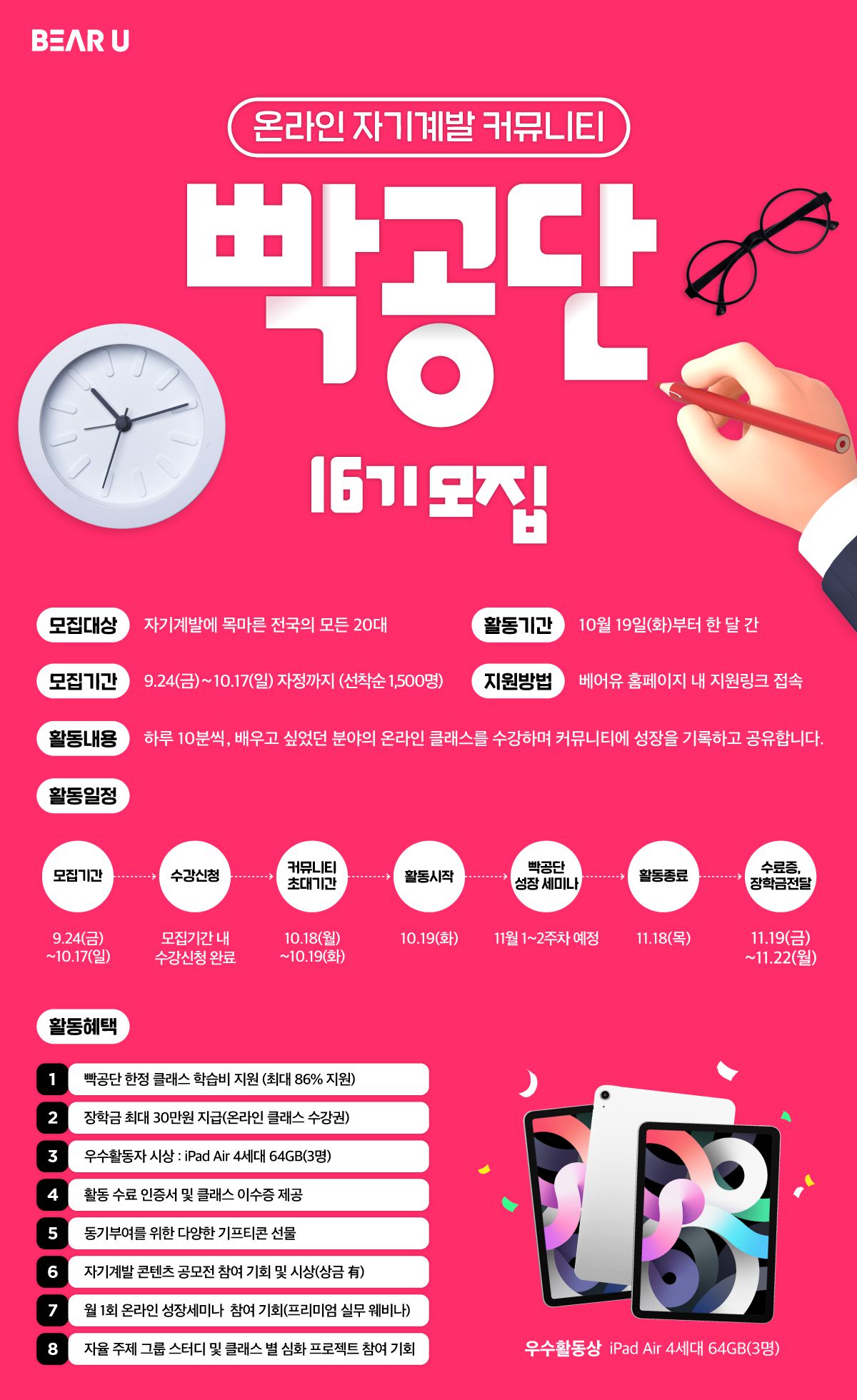- 모집 기간 : 9월 24일(금) ~ 10월 17일(일) 23시 59분까지