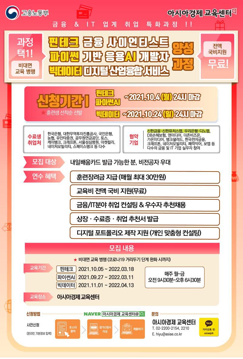 1) 파이썬AI : 2021. 09. 27 ~ 2022. 03. 11 (해당과정에 참여하고 싶은 분은 전화 문의 주세요!)