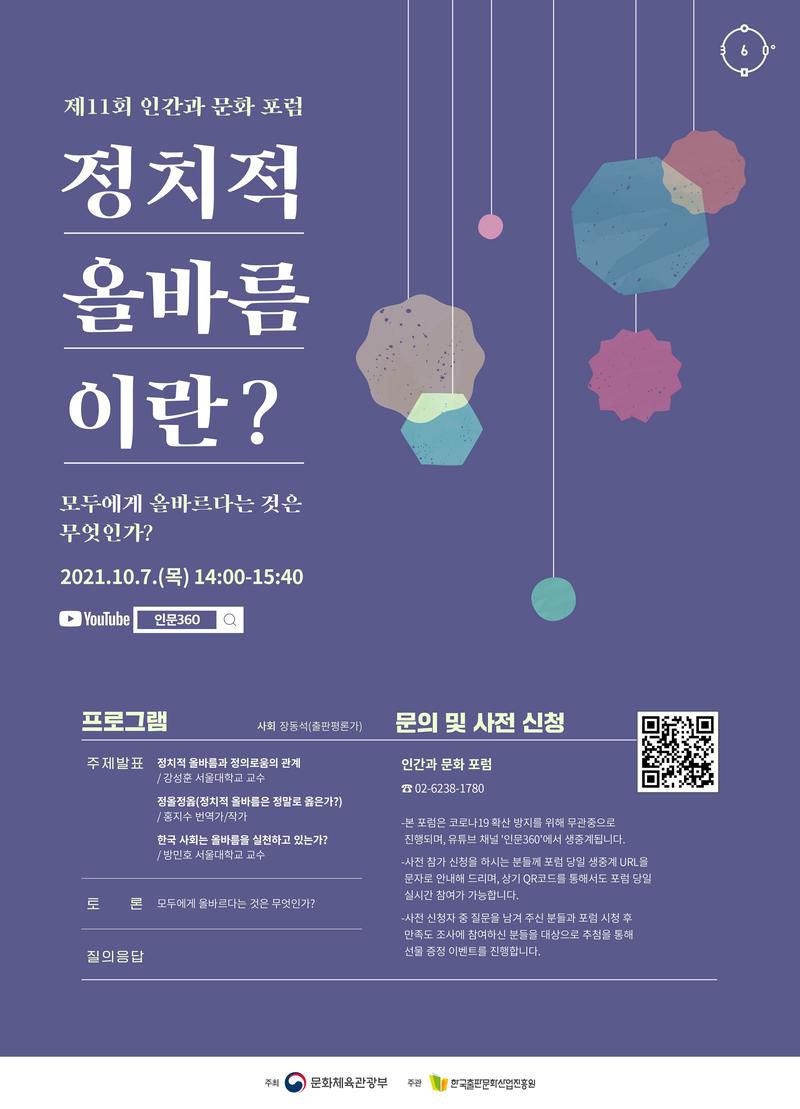 안녕하세요. 한국출판문화산업진흥원 인문360 「인간과 문화 포럼」입니다.