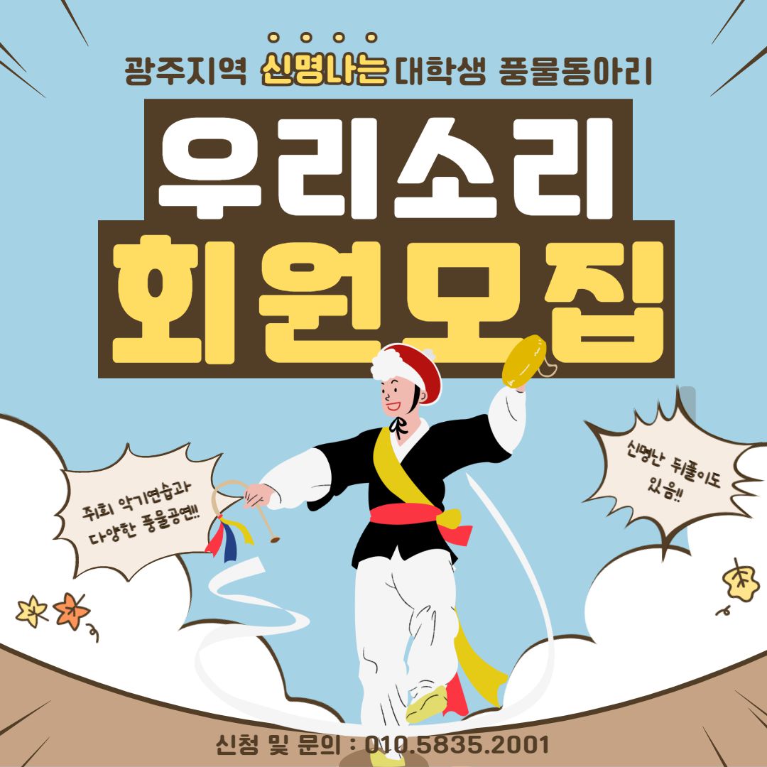 🔥🥁광주지역 대학생 전통문화 풍물동아리 <우리소리> 하반기 신입회원 모집🔥🎶