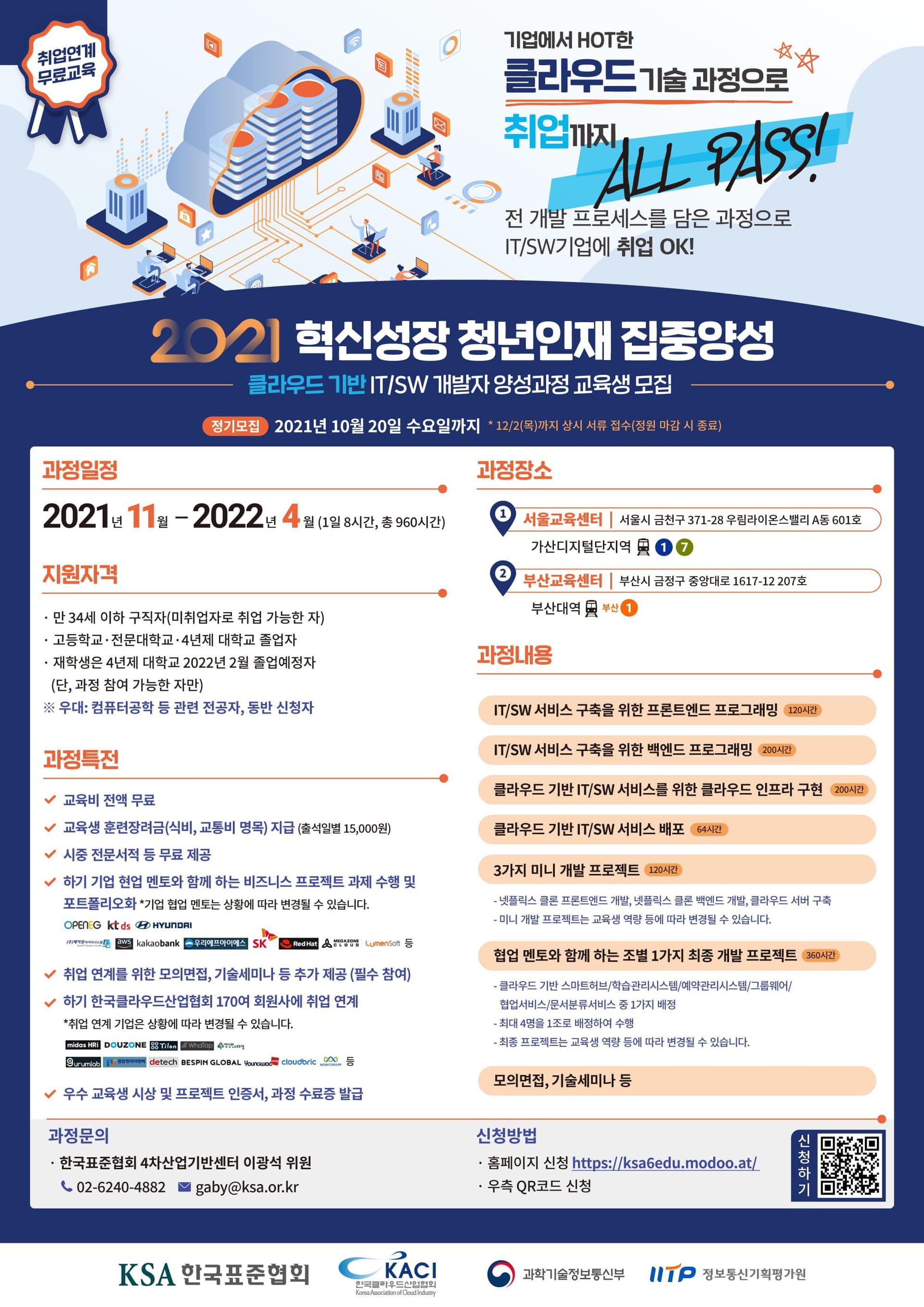 [혁신성장 청년인재 집중양성] 클라우드 기반 IT/SW 개발자 양성과정 교육생 모집