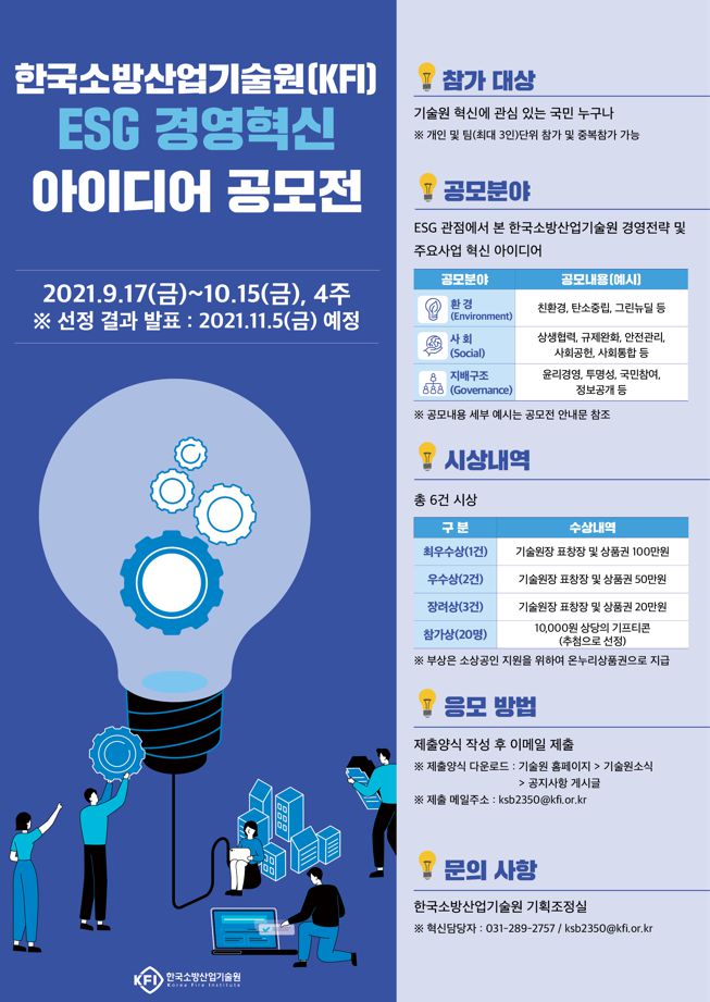 1. 공모전명 : 한국소방산업기술원(KFI) ESG 경영혁신 아이디어 공모전