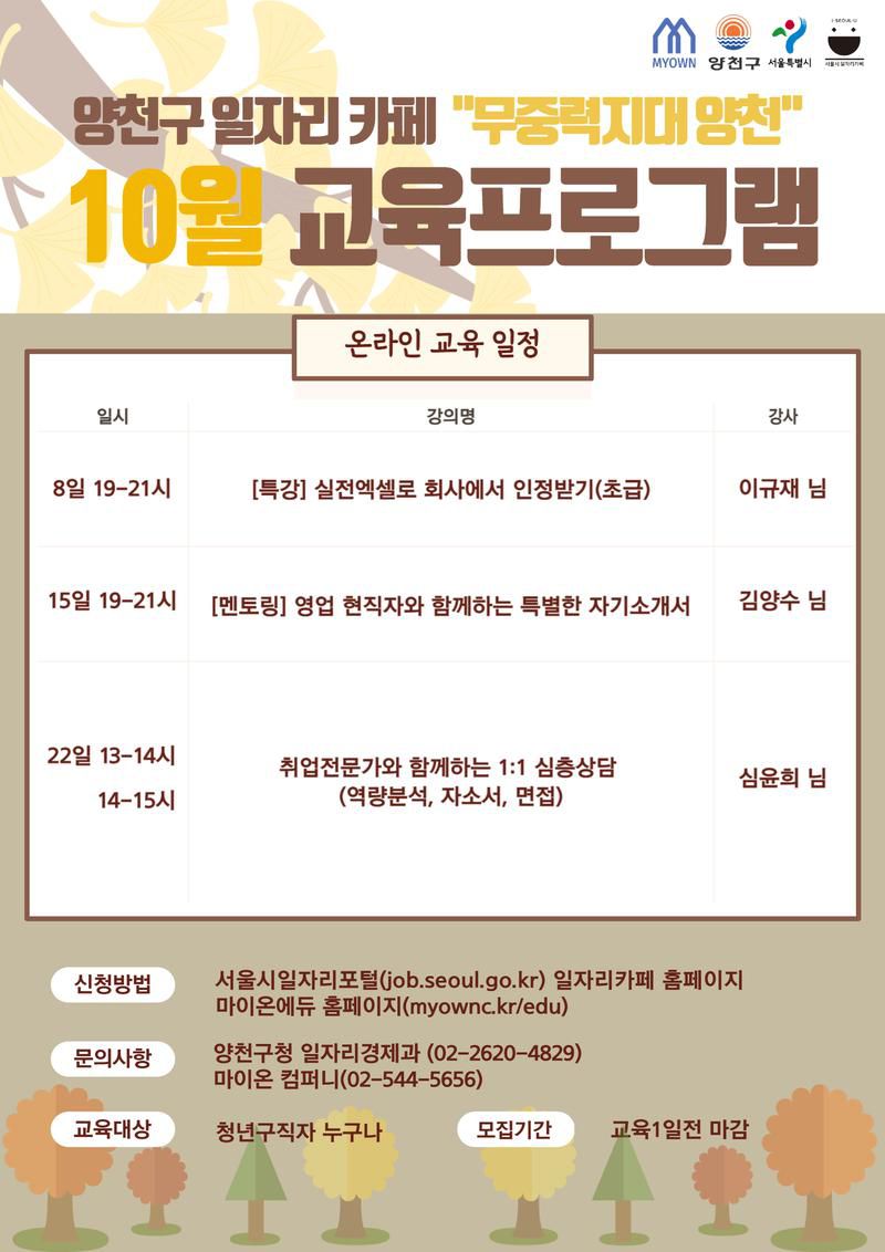 👉 문의사항: 1) 양천구청 일자리경제과(02-2620-4829) / 2) 마이온 에듀 02-544-5656
