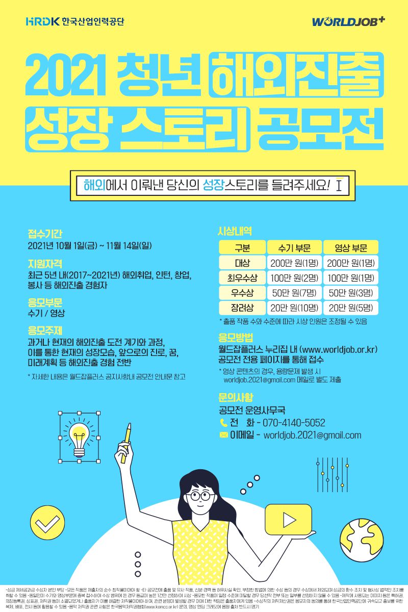 '2021년 청년해외진출 성장스토리 공모전'에 참여할 수 있습니다.