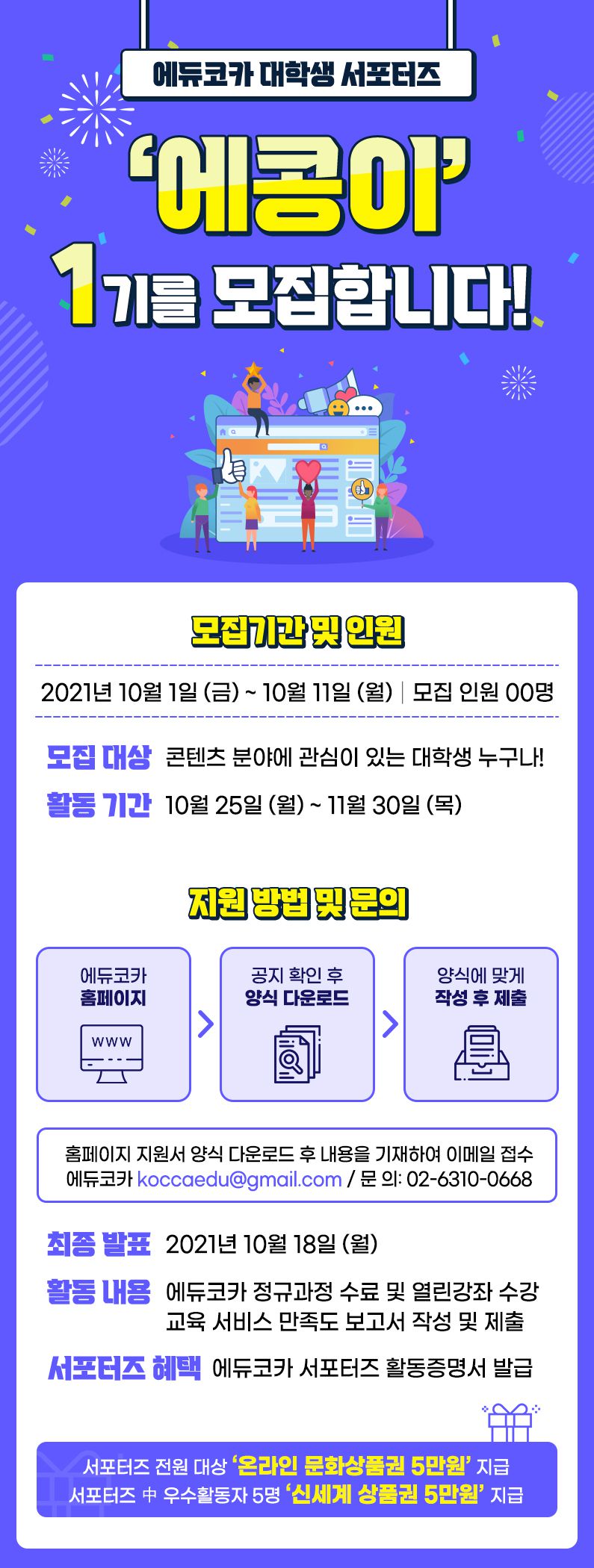 메일 제목과 첨부 파일명에 [에듀코카_서포터즈_지원_본인이름] 표기