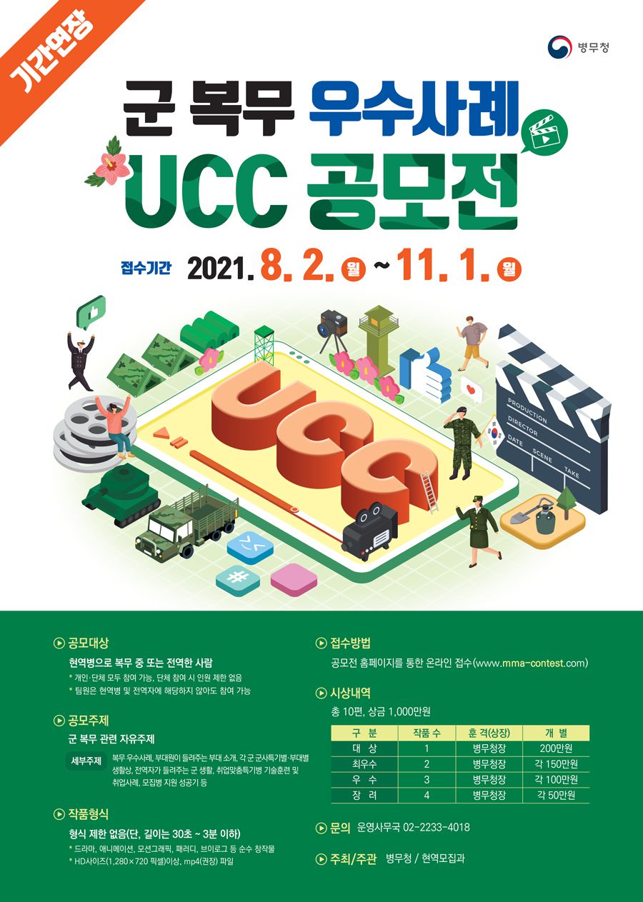 수상작 활용에 대한 저작재산권(복제, 배포 등) 및 2차적 저작물 작성권은 병무청에 귀속됩니다.