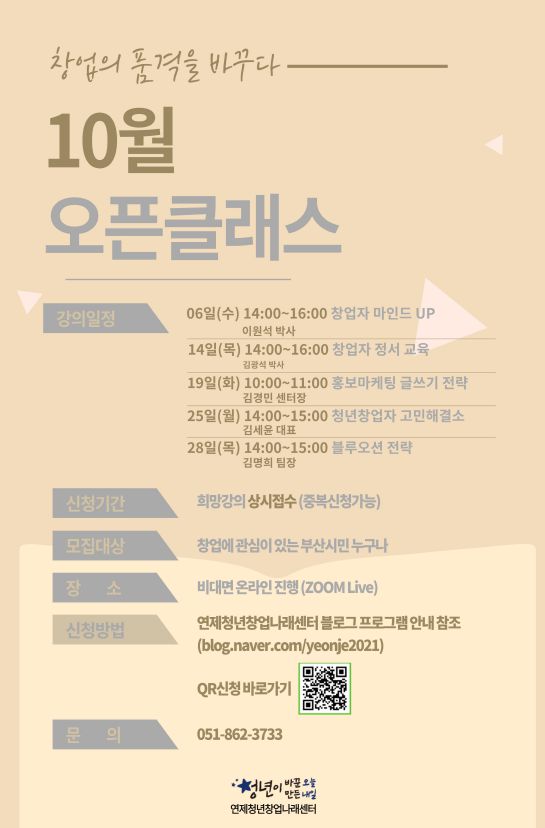 연제청년창업나래센터 <10월 오픈클래스> 참여자 모집