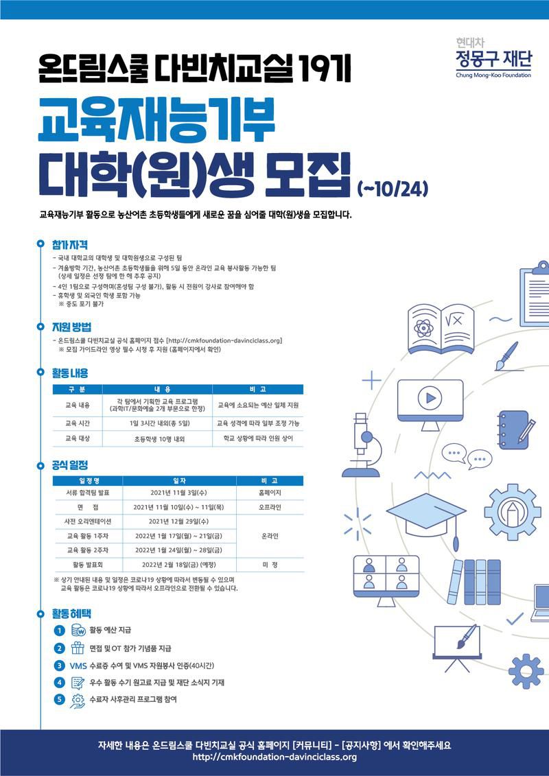 - 현대차 정몽구 재단, 온드림스쿨 다빈치교실 공식 홈페이지 지원