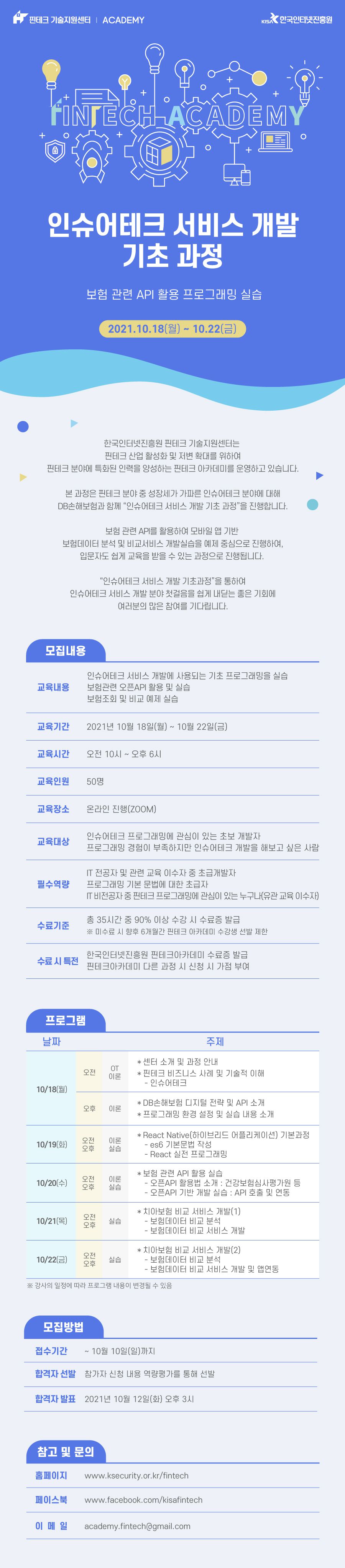 [KISA핀테크아카데미] 인슈어테크 서비스 개발 기초 과정 참가자 모집
