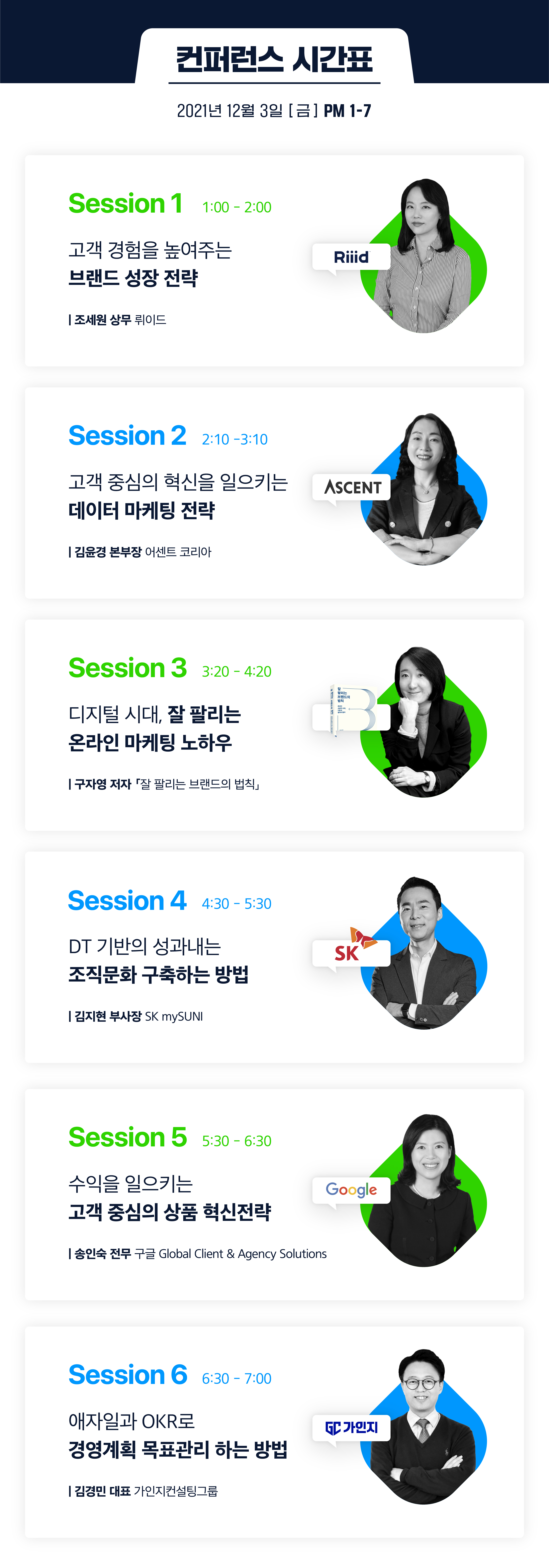 6명 연사의 생생한 실제 성공 사례와 지식이 있는 인사이트 강연!