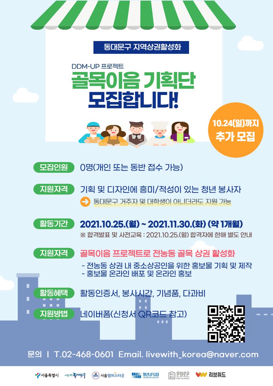 - 기획 및 디자인에 흥미/적성이 있는 청년 봉사자(동대문구 거주자 및 대학생이 아니더라도 지원 가능)
