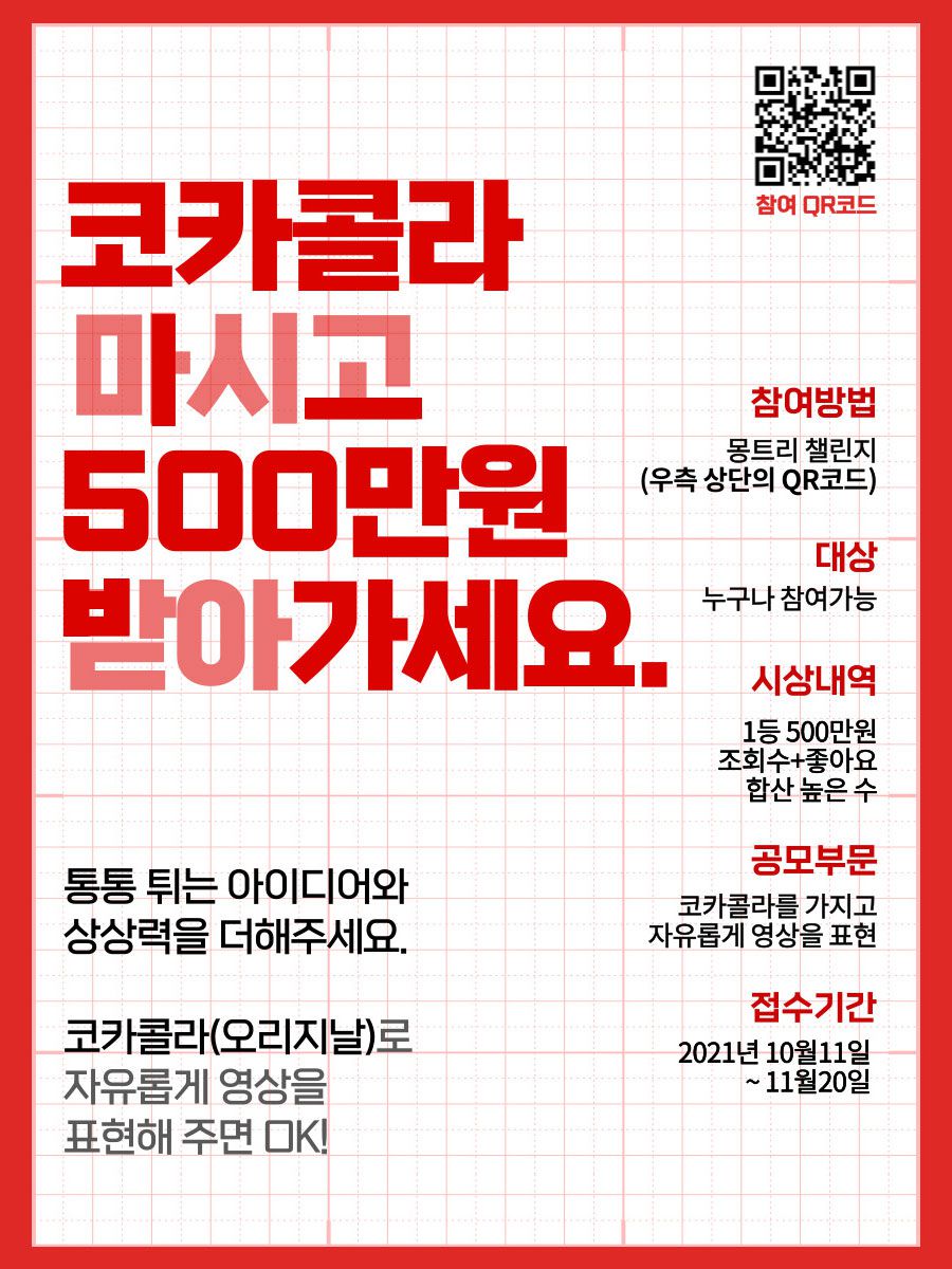 응모자격: 코카콜라 영상 찍고, 500만원 받아가고 싶은 지구인 누구나!