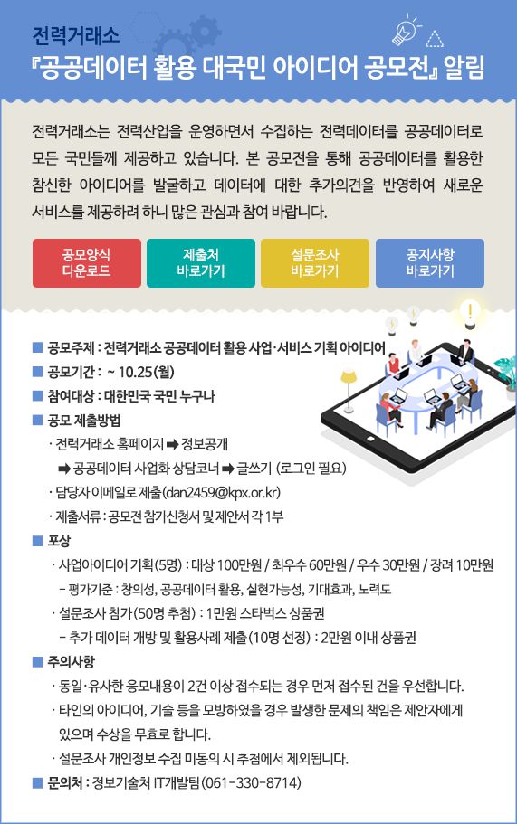 - 전력거래소에서 보유한 공공데이터를 활용한 사업 또는 서비스기획 아이디어