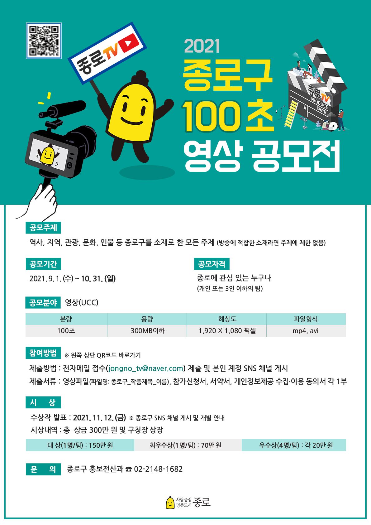 ✨2021 종로구 100초 홍보 영상(UCC) 공모전을 연장합니다✨