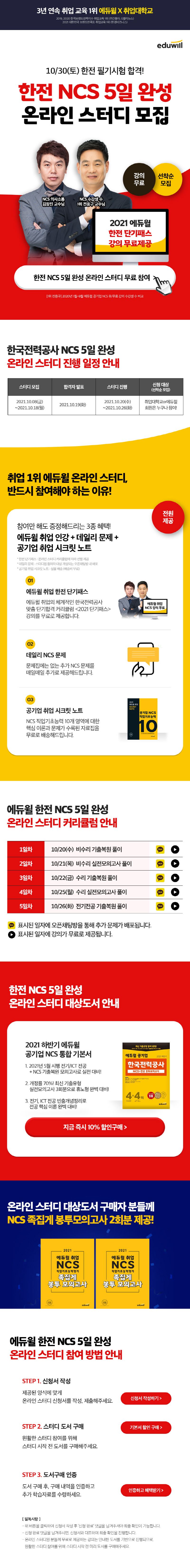 에듀윌 한국전력공사 NCS + 전공 봉투모의고사 온라인스터디 선착순모집! (~21.10.18)