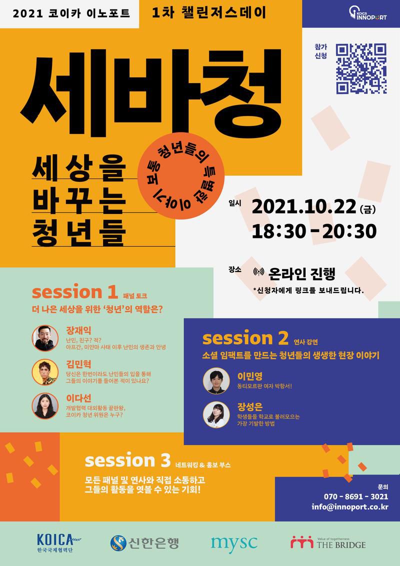 코이카 이노포트, 제 1차 챌린저스데이인 ‘세.바.청 (세상을 바꾸는 청년들)’ 토크콘서트에 여러분을 초대합니다!