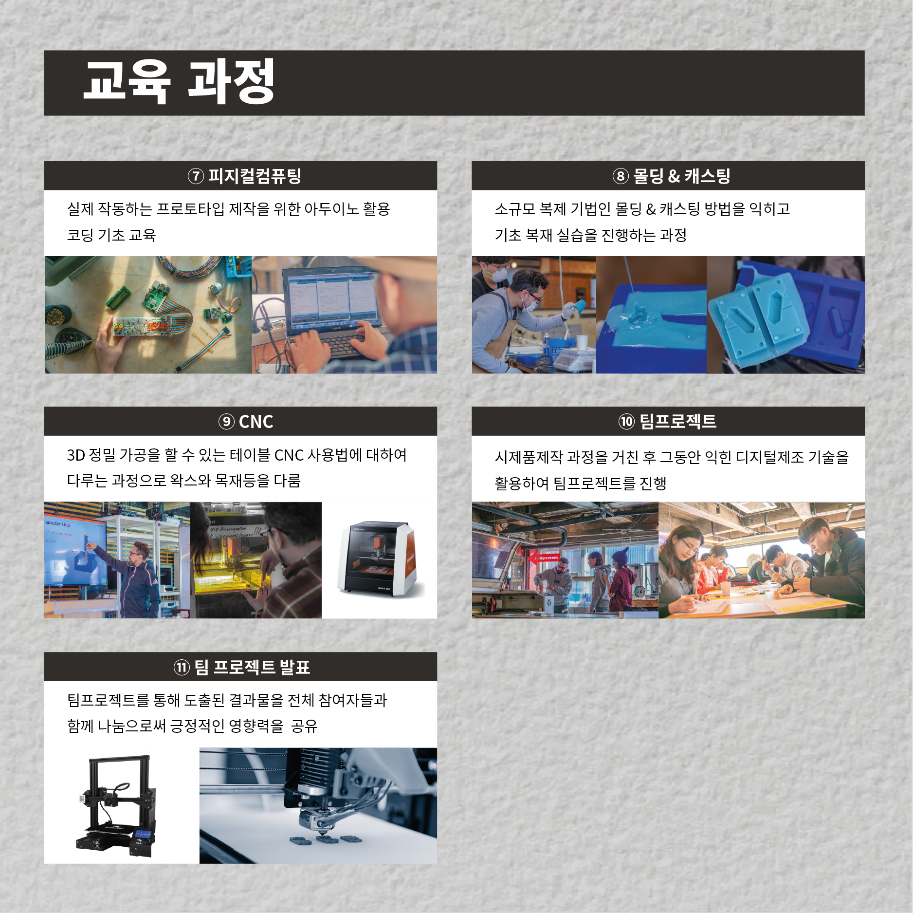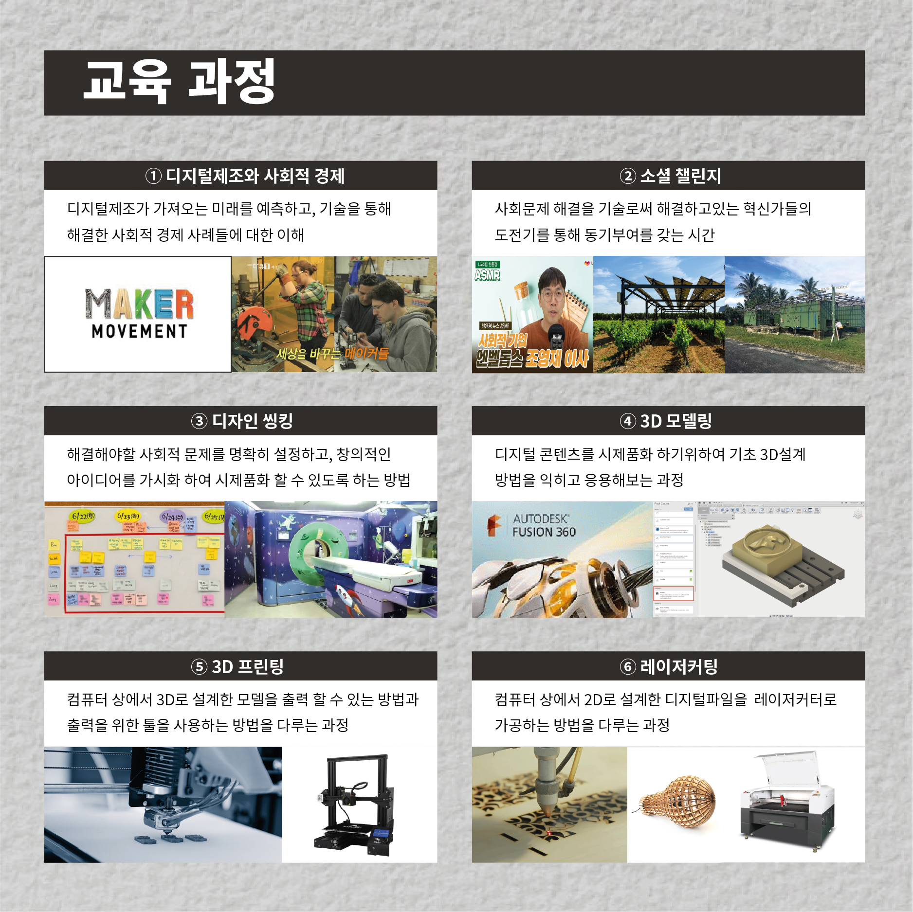 - 디자인씽킹부터, 3D프린팅, 레이저커팅, CNC,