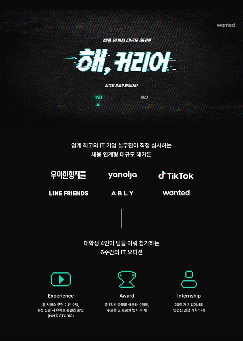 채용연계형 대규모 해커톤 [해, 커리어]에 지금 참가신청하세요!