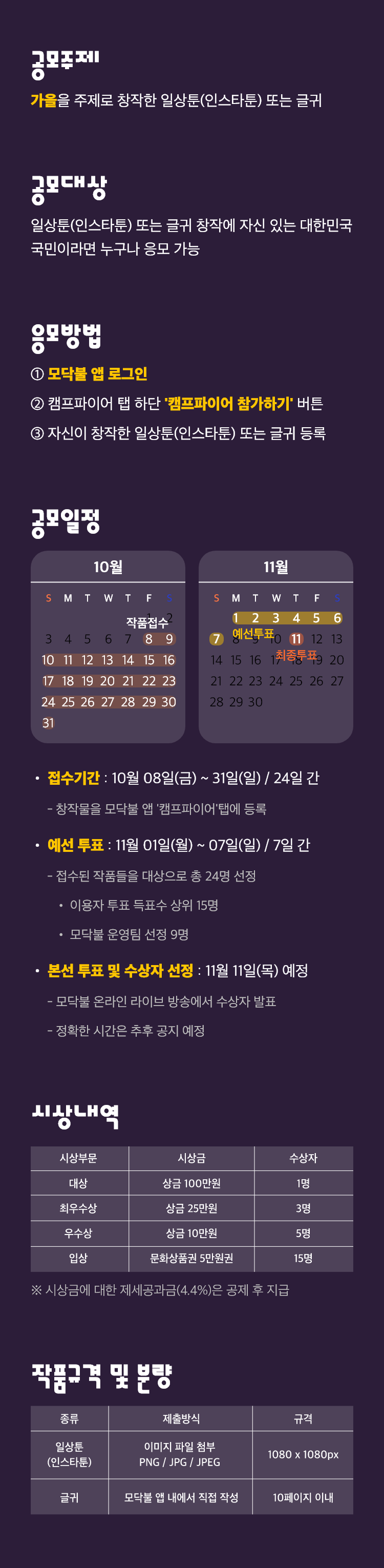 일상툰(인스타툰) 또는 글귀 창작에 자신 있는 대한민국 국민이라면 누구나 응모 가능