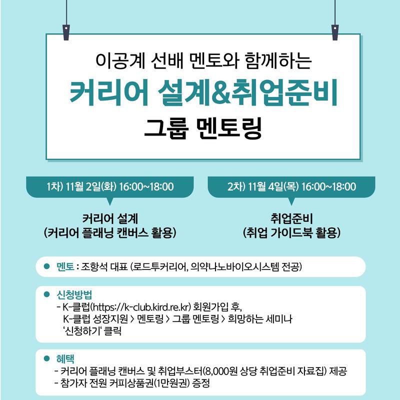 [신청방법] 바로가기 : https://k-club.kird.re.kr/prog/grpMentrg/career/sub01_01_03/list.do