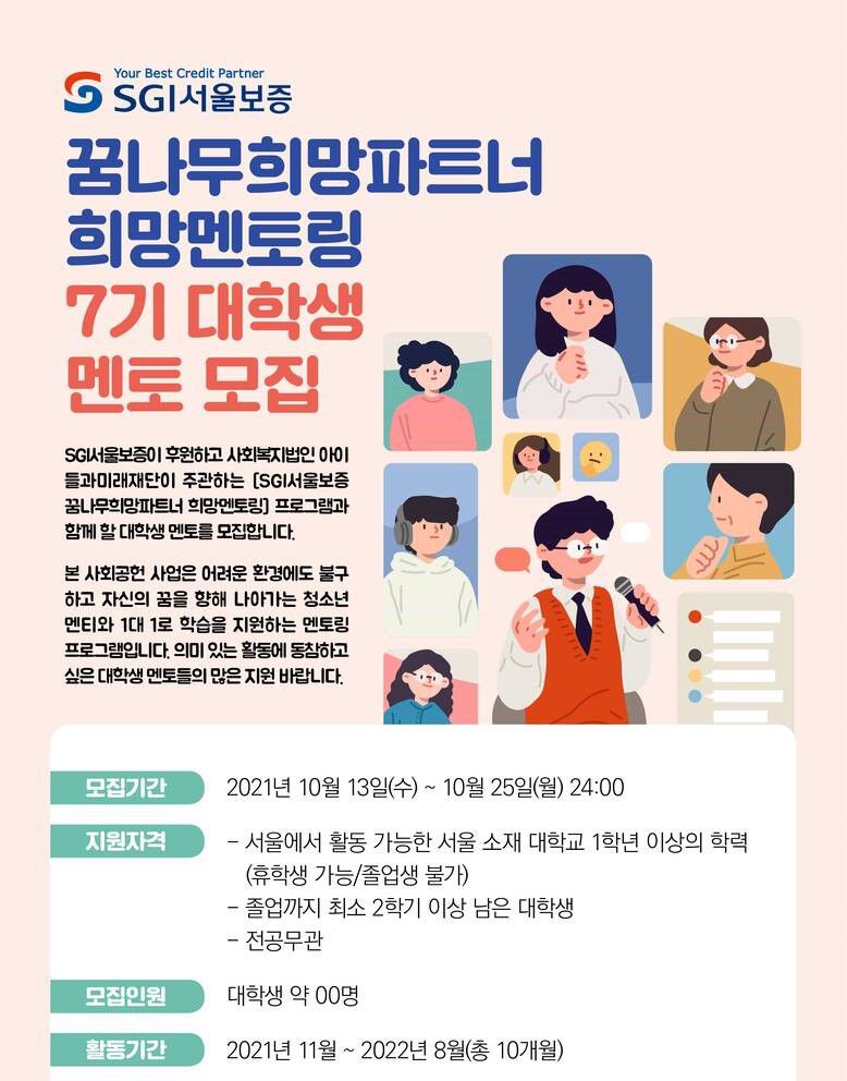 SGI서울보증 꿈나무희망파트너 희망멘토링 7기 대학생 멘토 모집