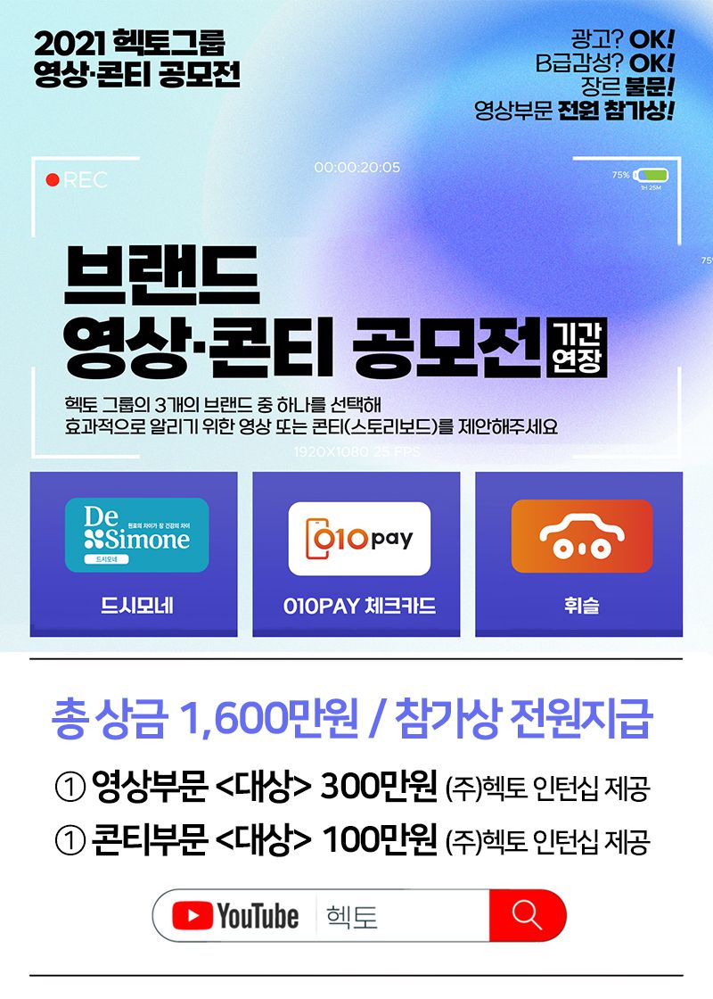 ※ 참가상 5 만원 수령을 위해 010PAY 서비스 가입이 필요합니다. 다수 작품 응모는 가능하나 중복 수상하지 않습니다.(1 인 1 수상)