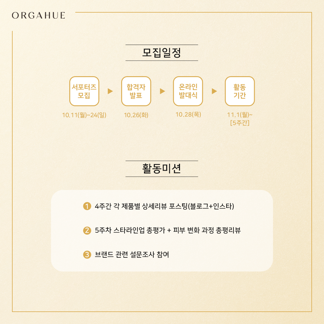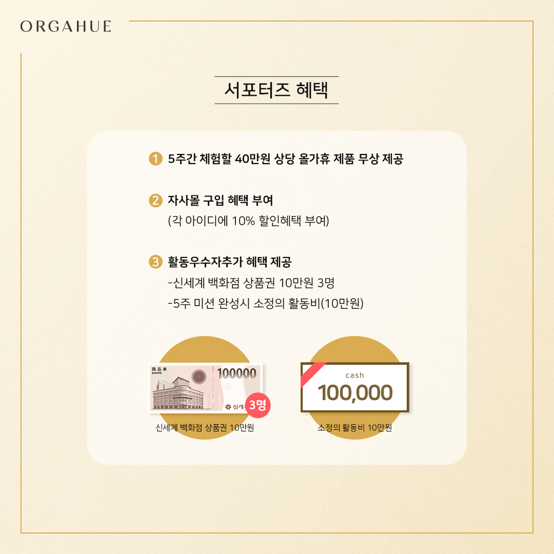 뷰티 인플루언서 대상이 아닌, 올가휴 제품의 진가를 경험하실 일반인, 취업준비생, 대학생이라면 지원해주세요!