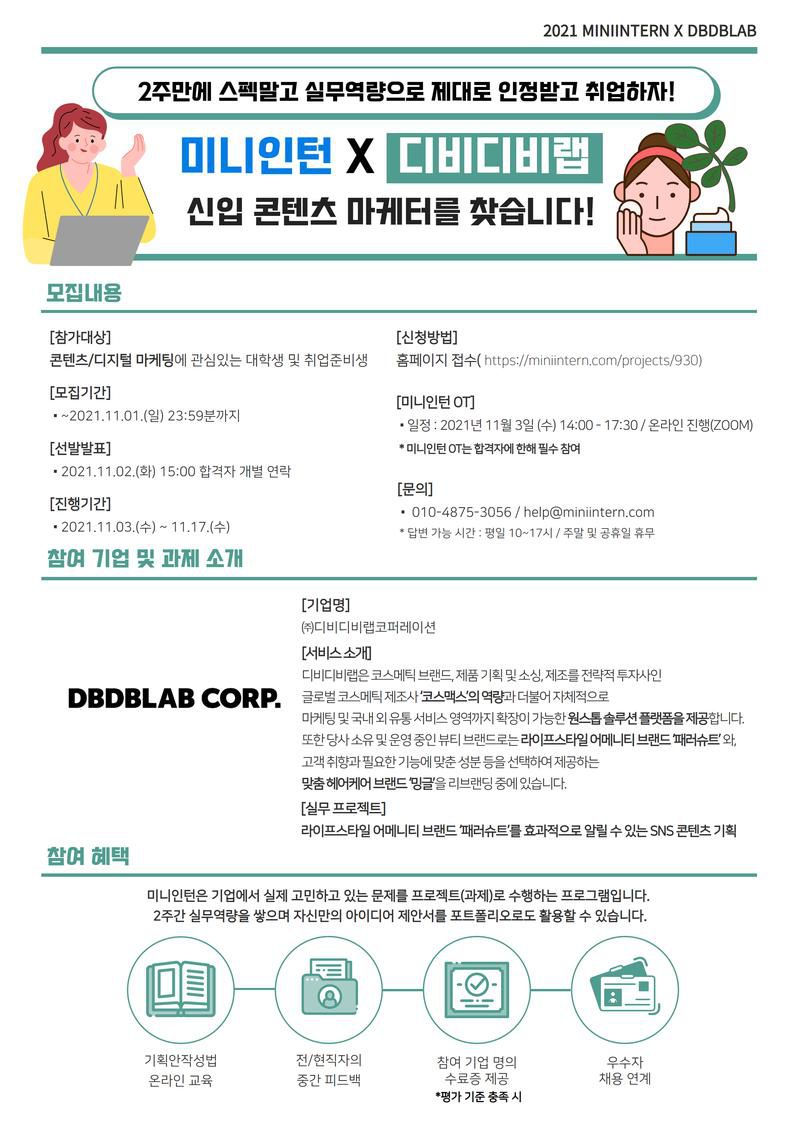 미니인턴을 통해 마케팅 /컨설팅 기업 '디비디비랩코퍼레이션 '의