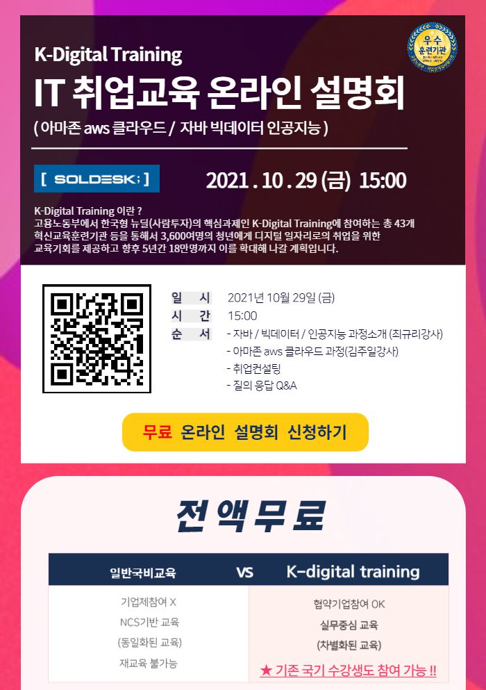 ▲케이디지털 고용노동부 우수훈련기관 솔데스크 바로가기.