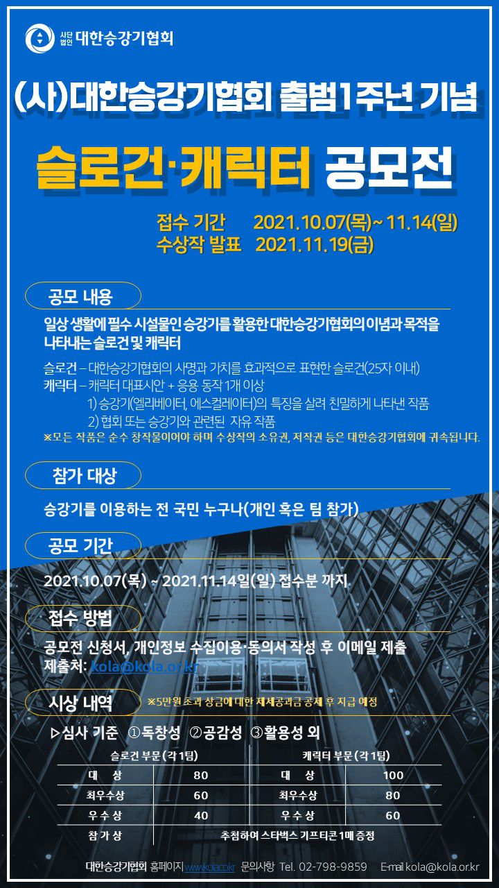 - 대한승강기협회 「슬로건·캐릭터 공모전」 담당자