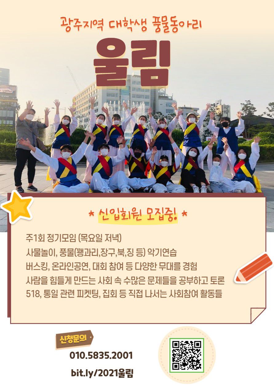 🥁🎵광주지역 대학생 풍물동아리 <울림> 하반기 신입회원 모집‼