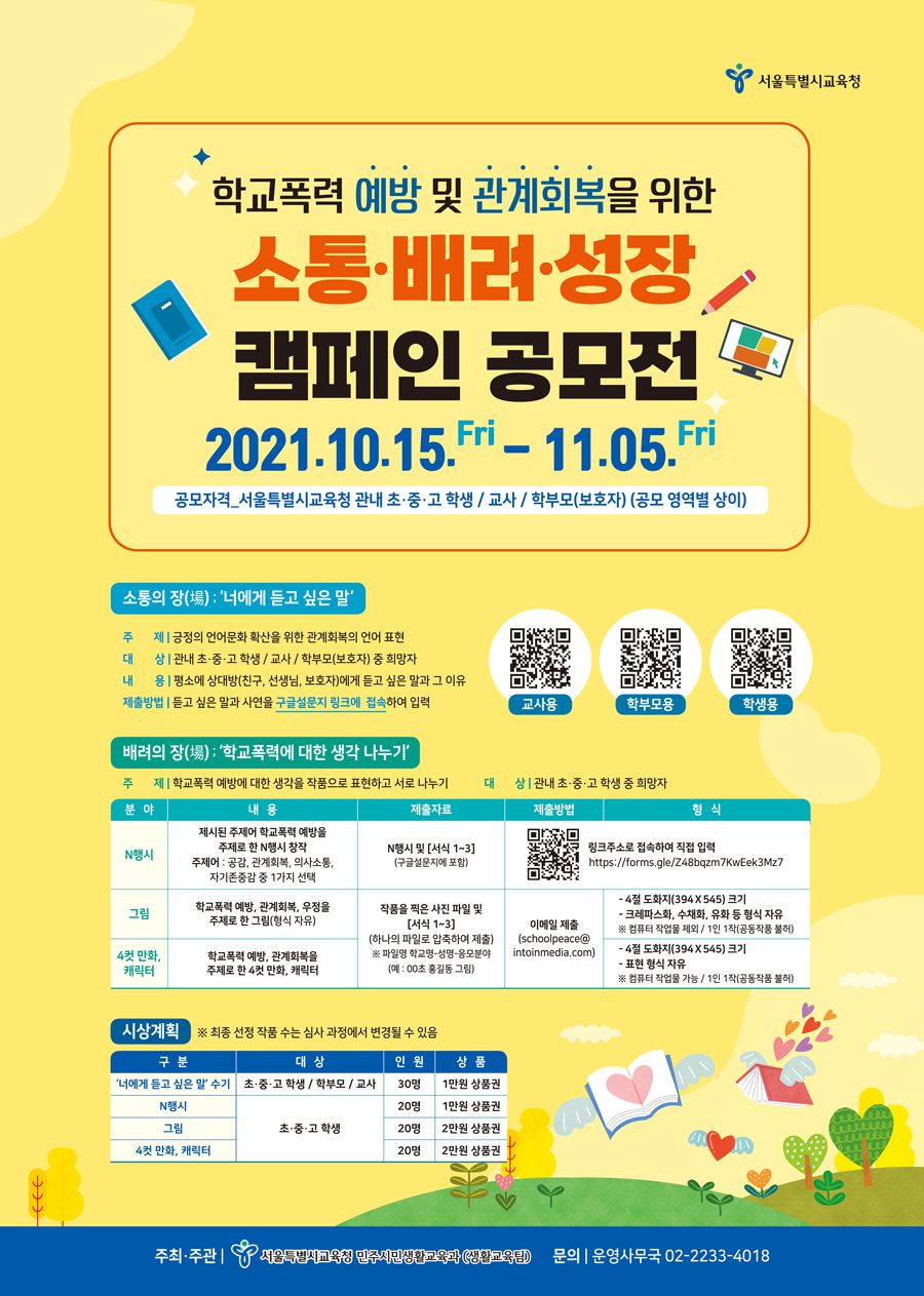 ❍ 공모명: 학교폭력예방 및 관계회복을 위한「소통·배려·성장 캠페인 공모전」
