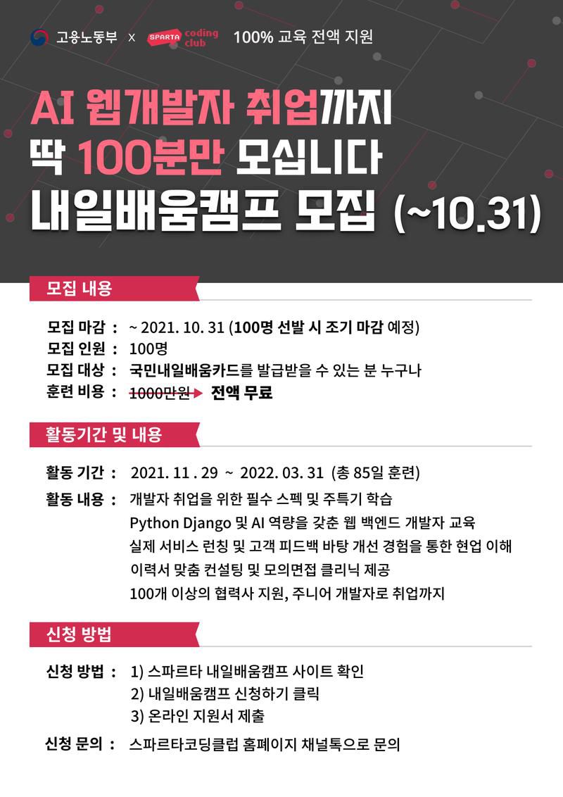 스파르타 내일배움캠프 - AI 웹개발 트랙 (1기) 모집