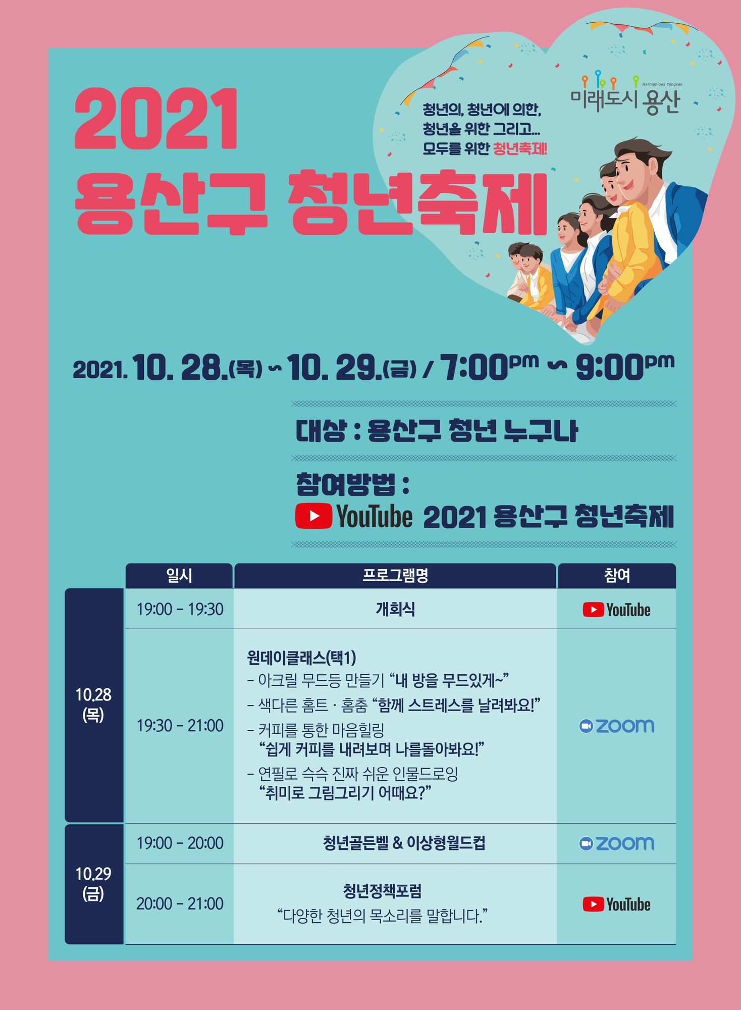유튜브 '2021 용산구 청년축제'를 검색해서 입장해주세요.
