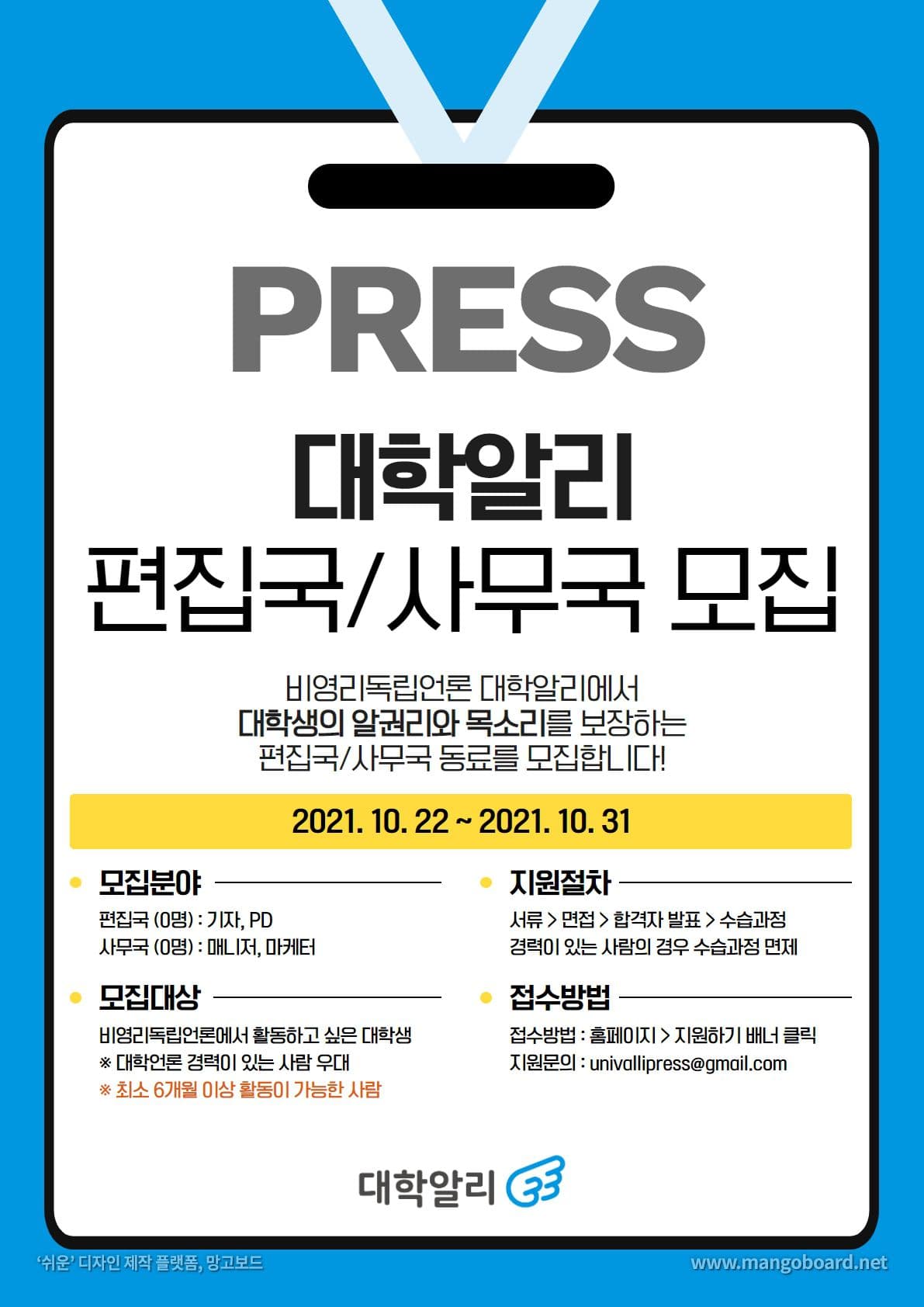 모집분야: 편집국[기자, PD], 사무국[매니저, 마케터]