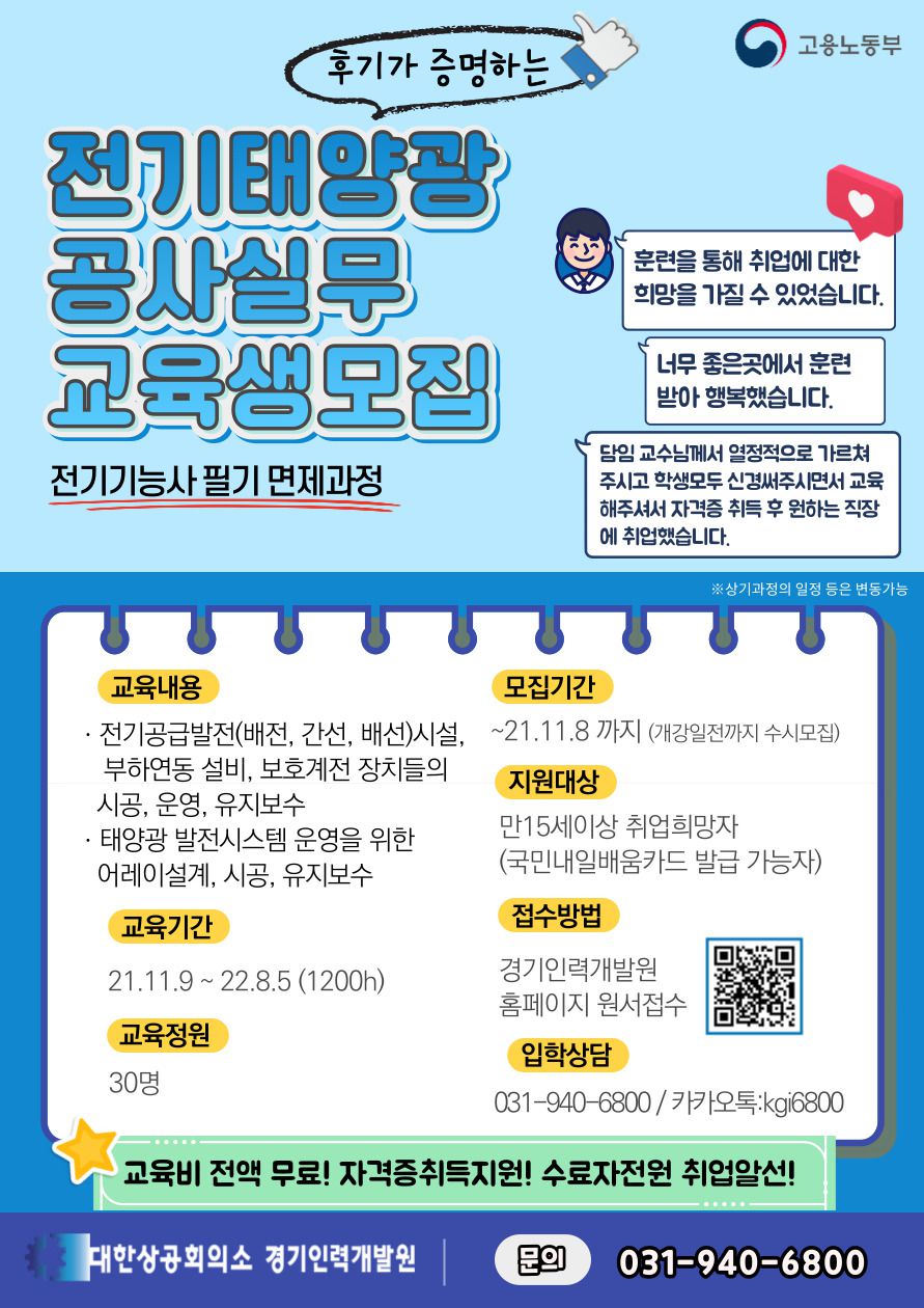 [경기인력개발원] 전기태양광공사실무 교육생 모집