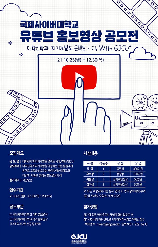 ■ 공모명 : “대학진학과 자기계발도 온택트 시대, With GJCU” 2021 국제사이버대학교 유튜브 홍보영상 공모전