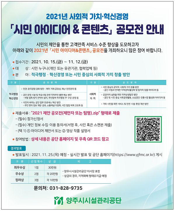 2021년 사회적 가치·혁신경영 「시민 아이디어&콘텐츠」 공모전