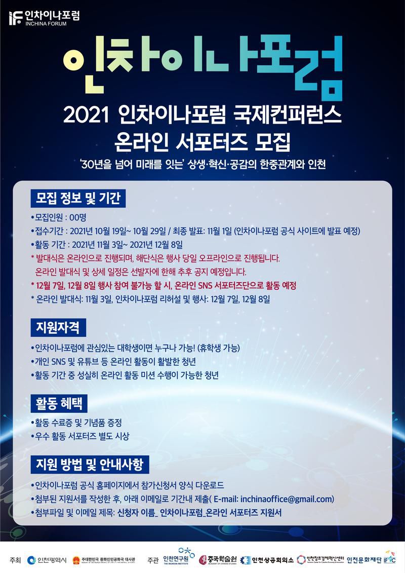 인차이나포럼 2021 국제컨퍼런스 서포터즈단 모집