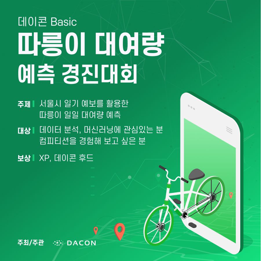 - 서울시 공유 자전거 “따릉이” 대여량과 날씨 데이터를 통해 데이터 분석 대회에 입문해보세요.