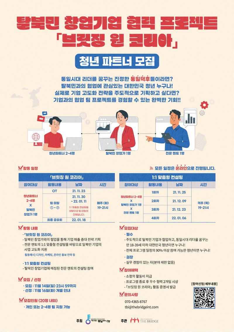 📢 더 브릿지에서 「브릿징 원 코리아」에 참여할 청년 파트너를 모집합니다!