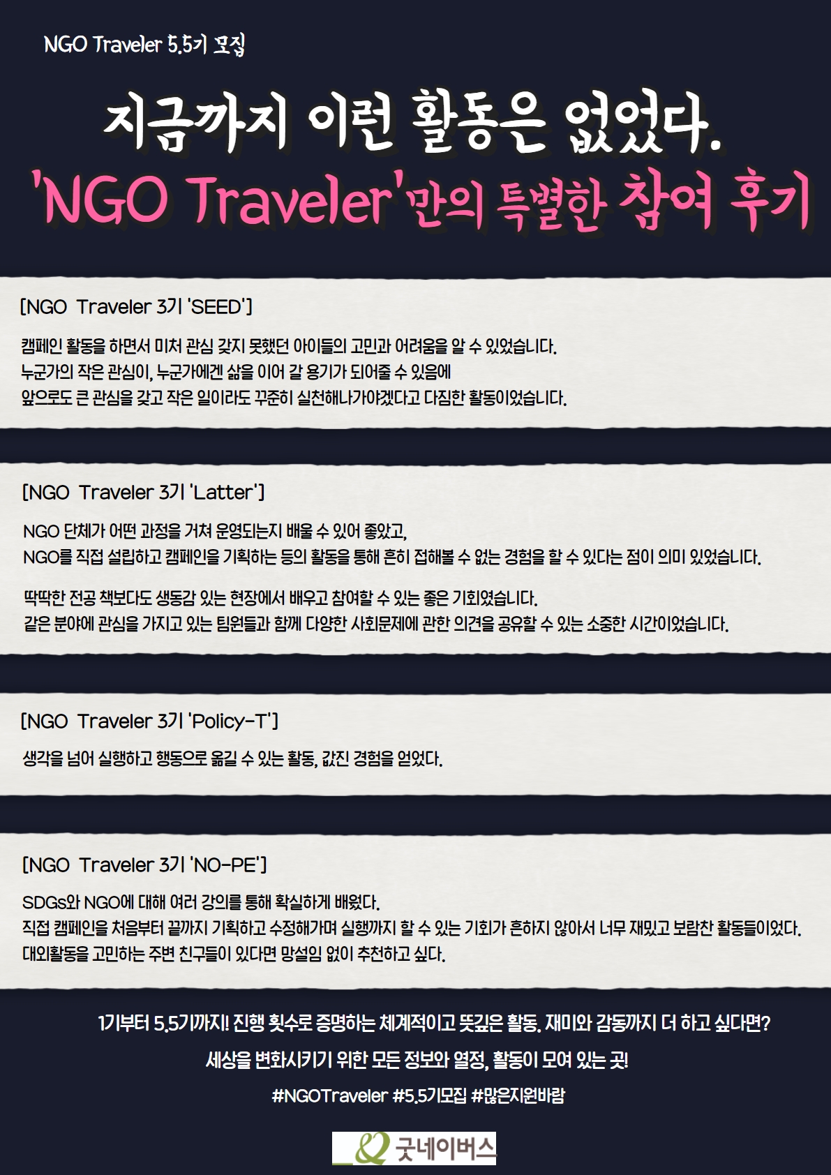 - ② NGO Traveler 카페 : https://vvd.bz/Yhc
