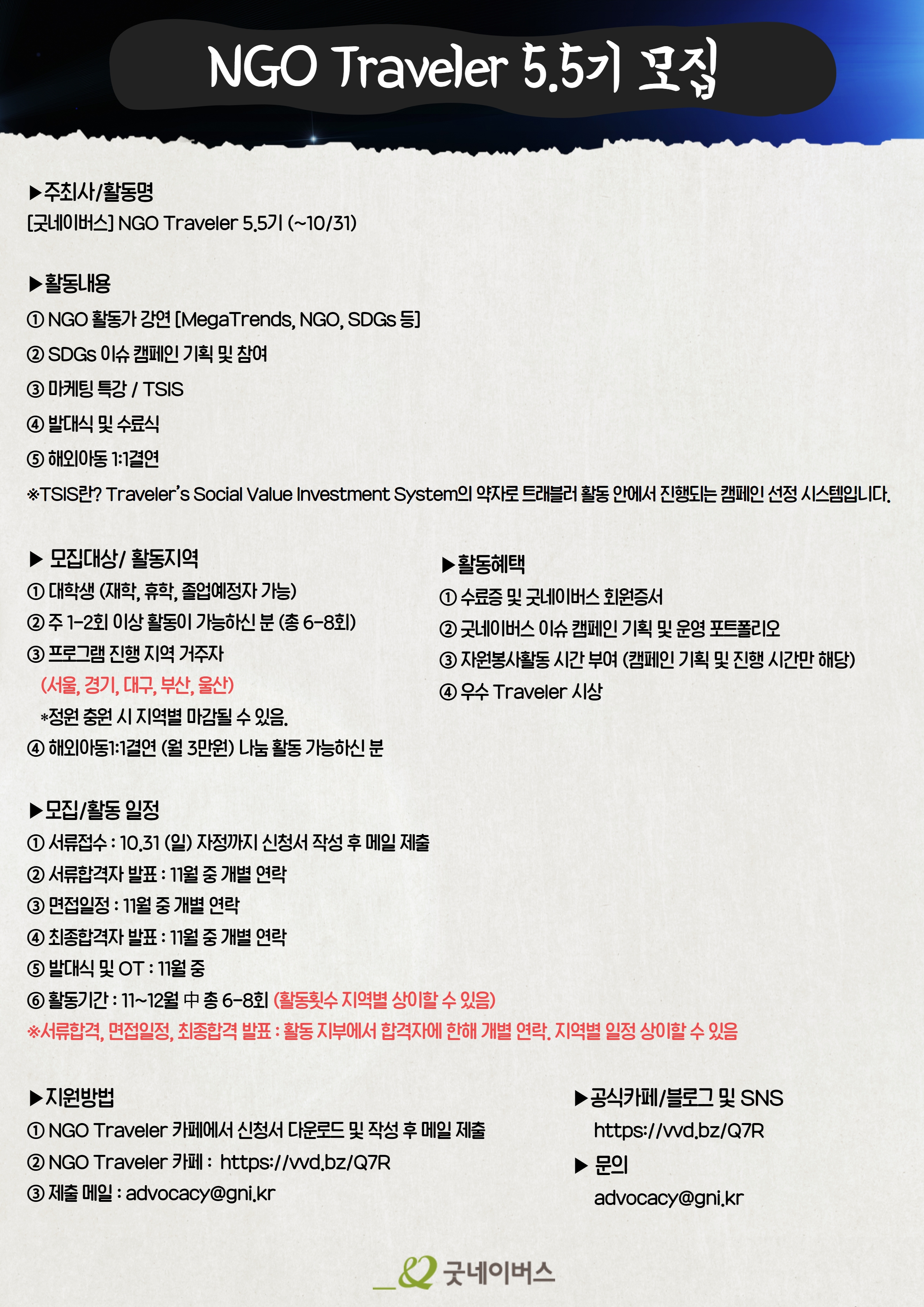 [굿네이버스] NGO Traveler 5.5기 (~10/31)