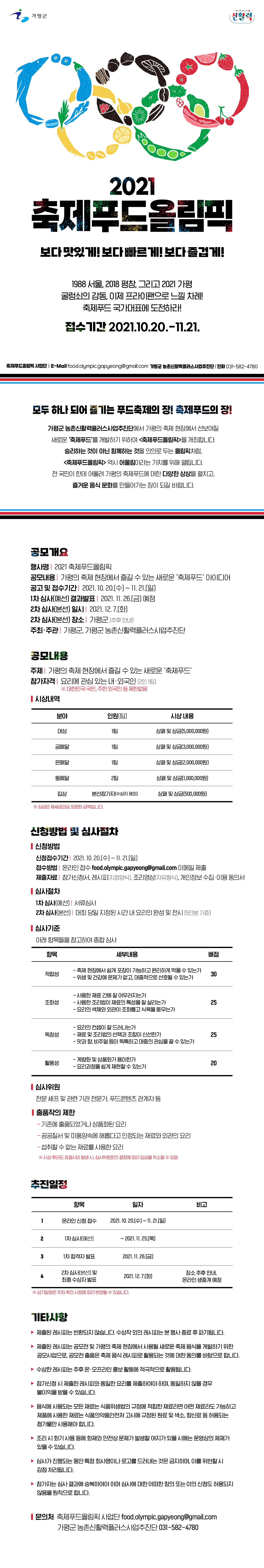 접수방법 : 온라인 접수 / food.olympic.gapyeong@gmail.com 이메일 제출